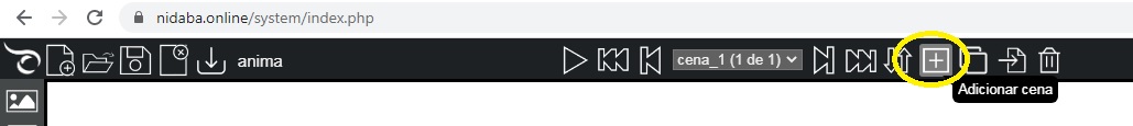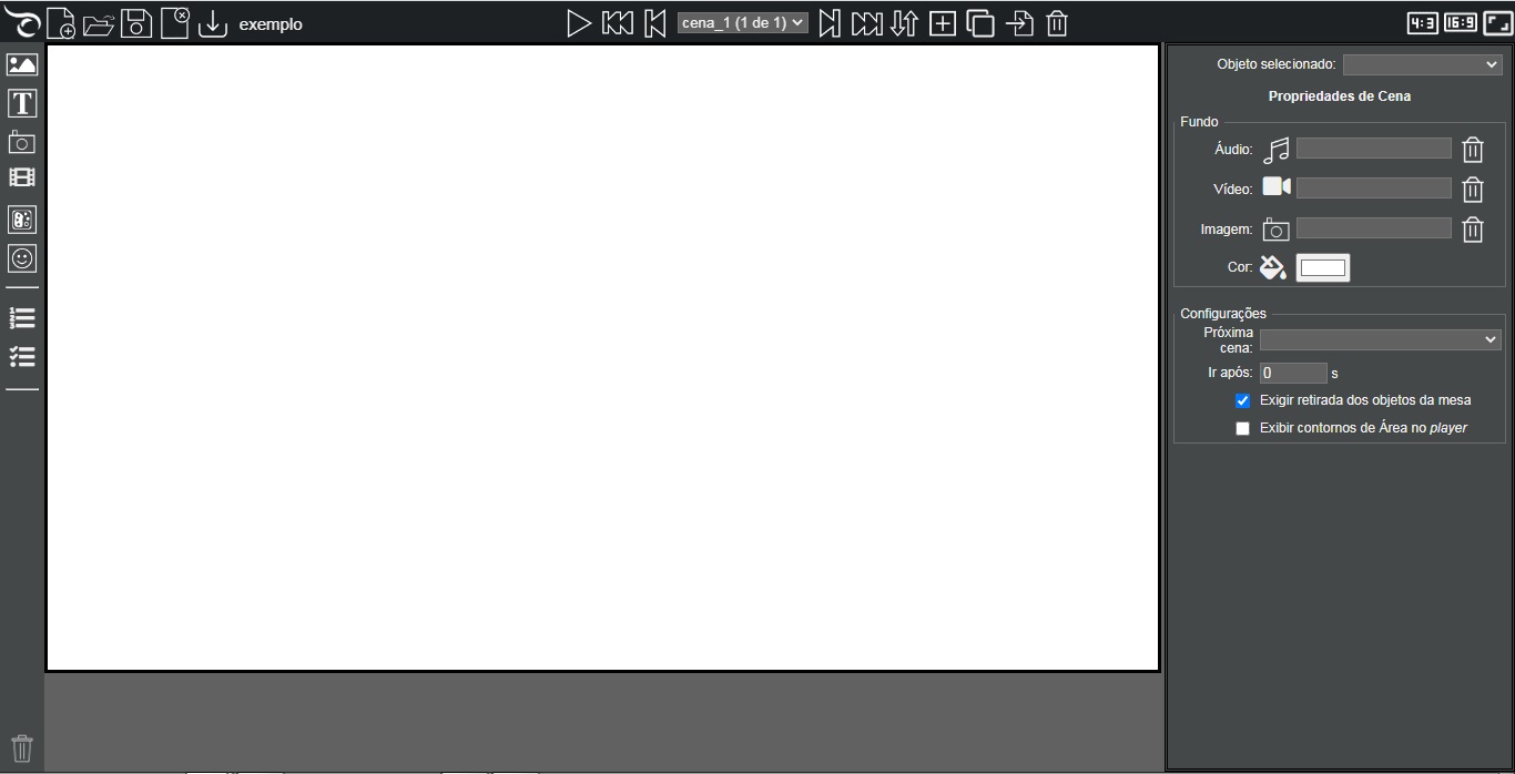 área central do editor devem ser inseridos os elementos da cena, que podem ser