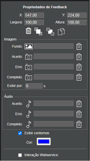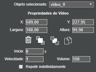 Excluir Aplicação: exclui a aplicação atual com todos os arquivos de áudio, imagens e vídeo e volta para o menu inicial do editor. Por segurança, este botão está localizado no canto inferior esquerdo do editor, bem distante dos demais botões.