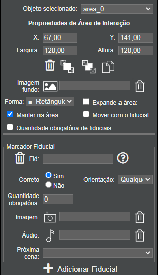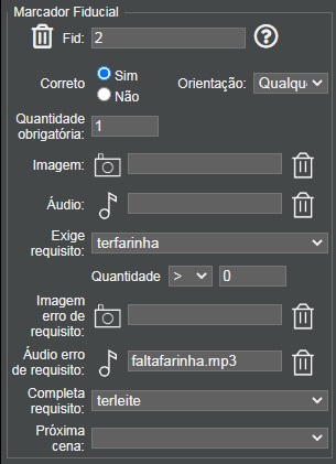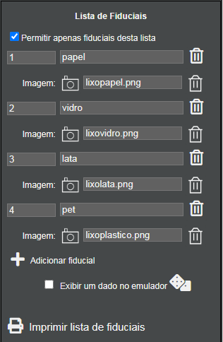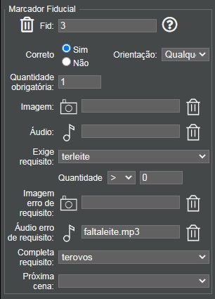 textos e imagens de feedback para cada interação com os fiduciais, que podem