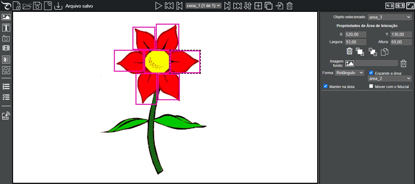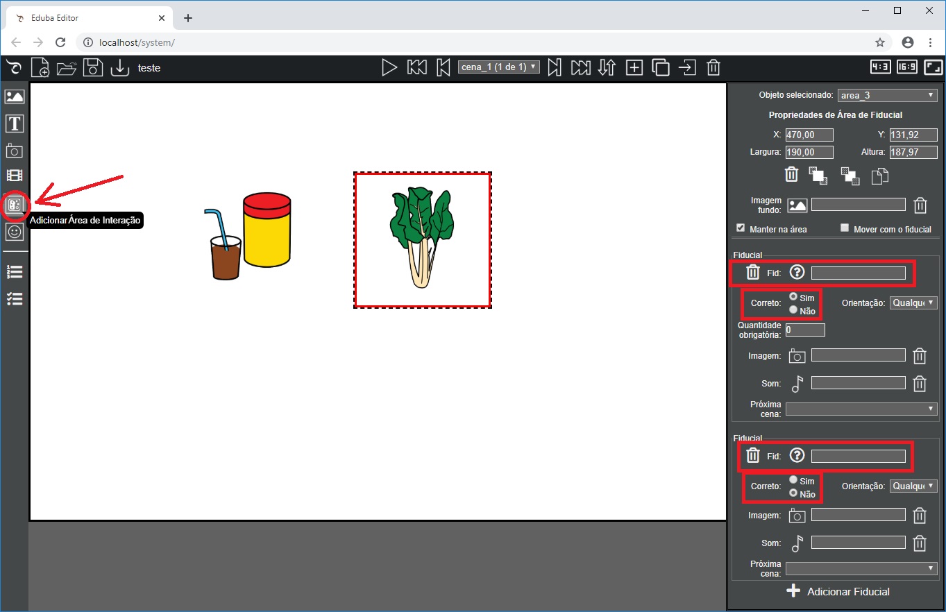 no editor são delimitadas as áreas dessa interação e a configuração dos marcadores